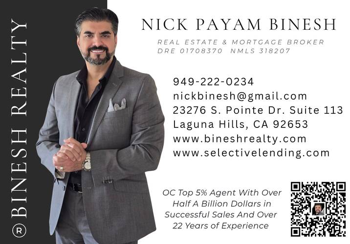 In 2010 he moved to south Orange County, realized he wanted to spend the rest of his life there, and expanded his business into the area. Today Nick has a team of five in his Orange County office: himself, one real estate broker associate, two Realtors and one mortgage broker associate. He serves the entire county, but focuses on south Orange County, with a repeat and referral rate of 85 percent. “I take my business very personally,” he says, explaining why clients keep coming back to him. “I become friends and treat them as if they’re part of my immediate family. Truly, 95 percent of my best friends today are my past clients. That’s what gets me up every day and keeps me going. Another thing is I’m never off the clock, I’m always available. And clients get my guarantee that I will personally handle their transaction from A–Z and beyond.”